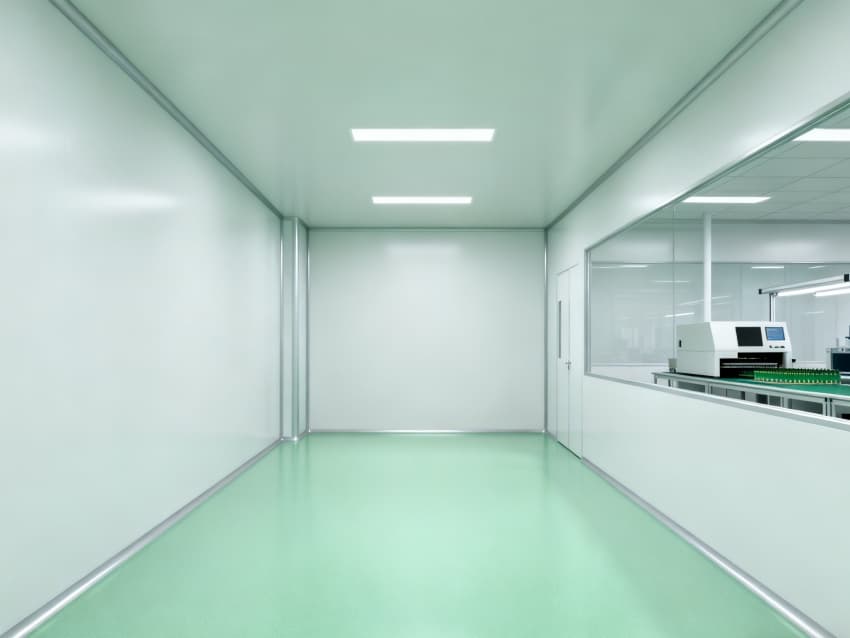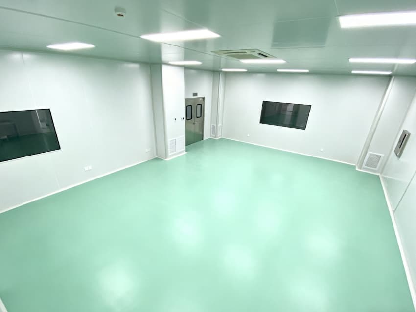 設(shè)計(jì)在環(huán)境防護(hù)上針對(duì)性突出:地面采用淺綠色防靜電環(huán)氧材質(zhì),表面電阻值控制在10^6-10^9Ω,有效規(guī)避靜電對(duì)電子零件的損傷;四周白色防塵墻壁經(jīng)啞光處理,減少光線反射干擾,配合頂部高效空氣過濾器(HEPA),可穩(wěn)定維持千級(jí)潔凈度,隔絕粉塵、微粒對(duì)精密組裝的影響。?