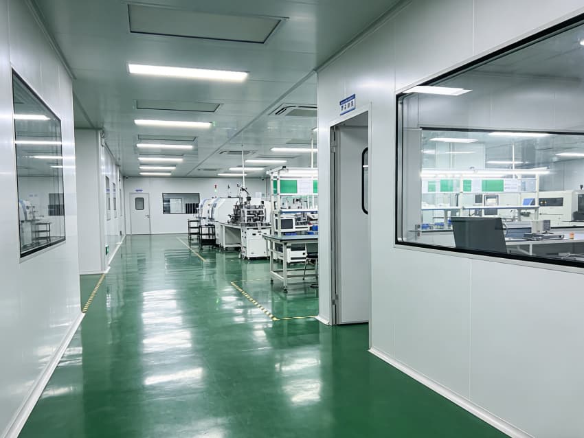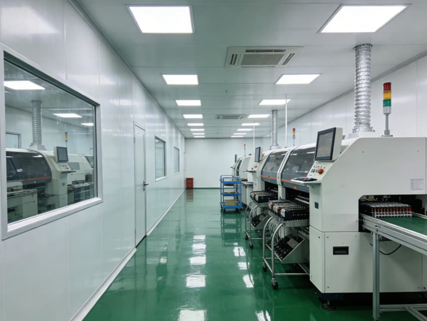 SMT 核心生產(chǎn)區(qū):針對高速貼片機、回流焊等設(shè)備做了地面承重加固與管線預(yù)埋,配置伸縮式通風(fēng)除塵管道,及時收集焊煙與粉塵;防靜電工作臺搭配 LED 工位燈,保障貼片、焊接的精度與效率。