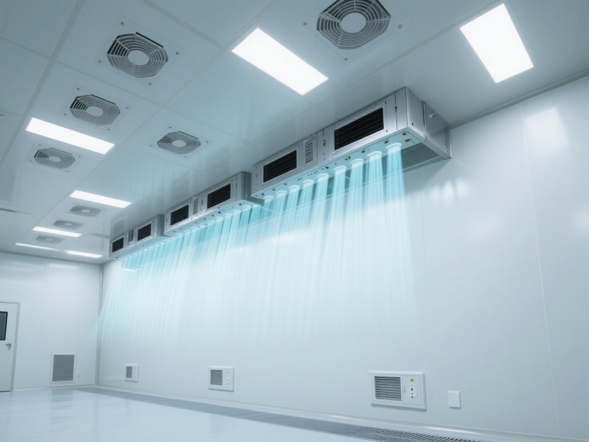 空氣凈化系統(tǒng)集成多組高效過濾器,通過精準(zhǔn)氣流控制維持車間內(nèi)高潔凈度,滿足電子光學(xué)元件對微塵的嚴(yán)苛要求。空間布局科學(xué),不銹鋼密封門保障區(qū)域隔離,智能控制系統(tǒng)實時監(jiān)控溫濕度、壓差等關(guān)鍵參數(shù),確保生產(chǎn)環(huán)境穩(wěn)定可控。