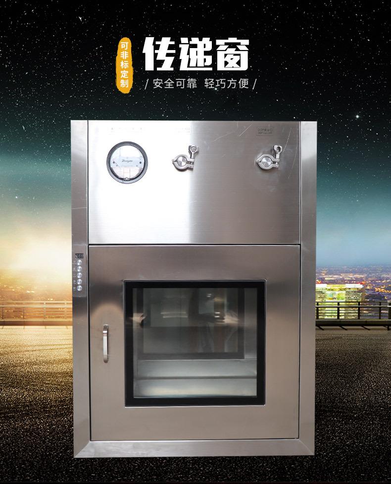 3、短距離傳遞窗工作臺面采用不銹鋼板,平整光潔耐磨