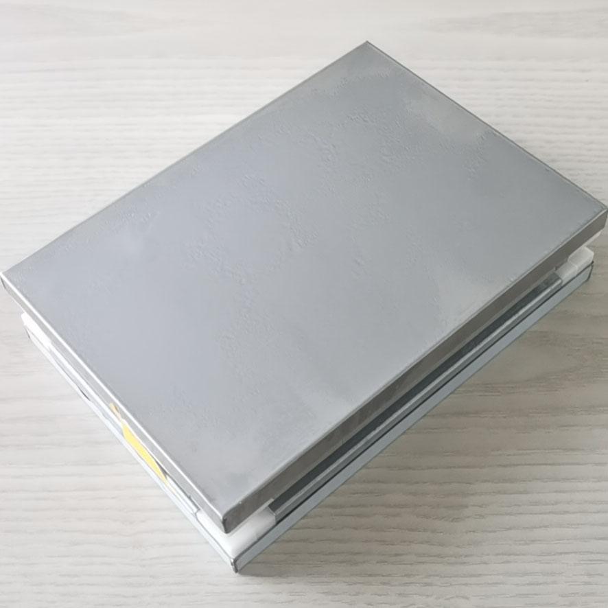 巖棉板適用于對(duì)防火有較高要求的工程。巖棉纖維垂直于金屬面板,高密度條狀巖棉沿板長(zhǎng)方向交錯(cuò)布置,保證了巖棉夾芯板具有良好的承重能力。