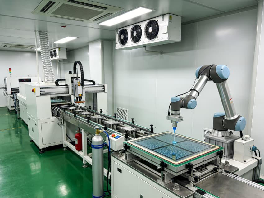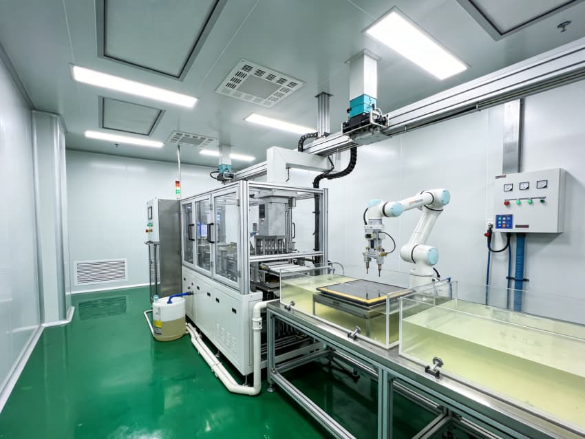 白色墻面采用工業級高潔凈涂層,推行無縫拼接工藝,陰陽角采用圓弧倒角設計,徹底消除積塵死角,保障潔凈度達標。廠房科學劃分陣列區、成盒區、模組組裝區等核心區域,陣列區配備百級層流凈化與高精度恒溫恒濕系統,成盒區設置無菌防護隔離裝置,各區域均預留智能生產設備接口與專用管線通道,全方位保障顯示器件生產的精準性與穩定性。
