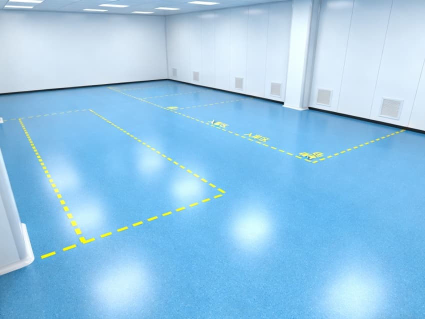 車間整體采用工業極簡主義設計風格,以藍白為主色調實現功能分區可視化:地面選用定制化藍色防靜電環氧地坪,經三層復合工藝處理,表面電阻值穩定維持在10?-10?Ω標準區間,不僅能有效泄放靜電,更通過添加納米級耐磨顆粒提升抗壓強度,配合防滑紋理設計,確保日均萬步以上的高頻作業場景下仍能保持表面完整性;四周白色防塵墻壁采用啞光抗菌涂層,配合弧形墻角設計消除積塵死角,在減少光線反射干擾的同時,可抑制99.9%的常見微生物滋生。頂部集成FFU(風機過濾單元)陣列與智能氣流監測系統,通過12級梯度風壓調控,實現每小時600次換氣頻率,持續維持ISO5級(千級)潔凈度標準,確保直徑≥0.5μm的懸浮粒子濃度控制在35200個/m³以內,全方位隔絕粉塵、纖維、微生物等污染源對精密元器件的潛在威脅。